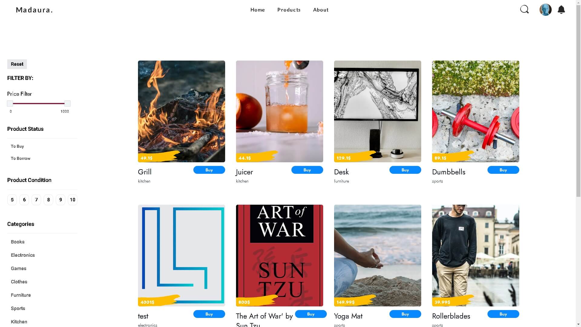 Welcome to Madaura, a fully-responsive web application platform for students to lend, borrow, sell, and buy new and used items of different categories from each other.