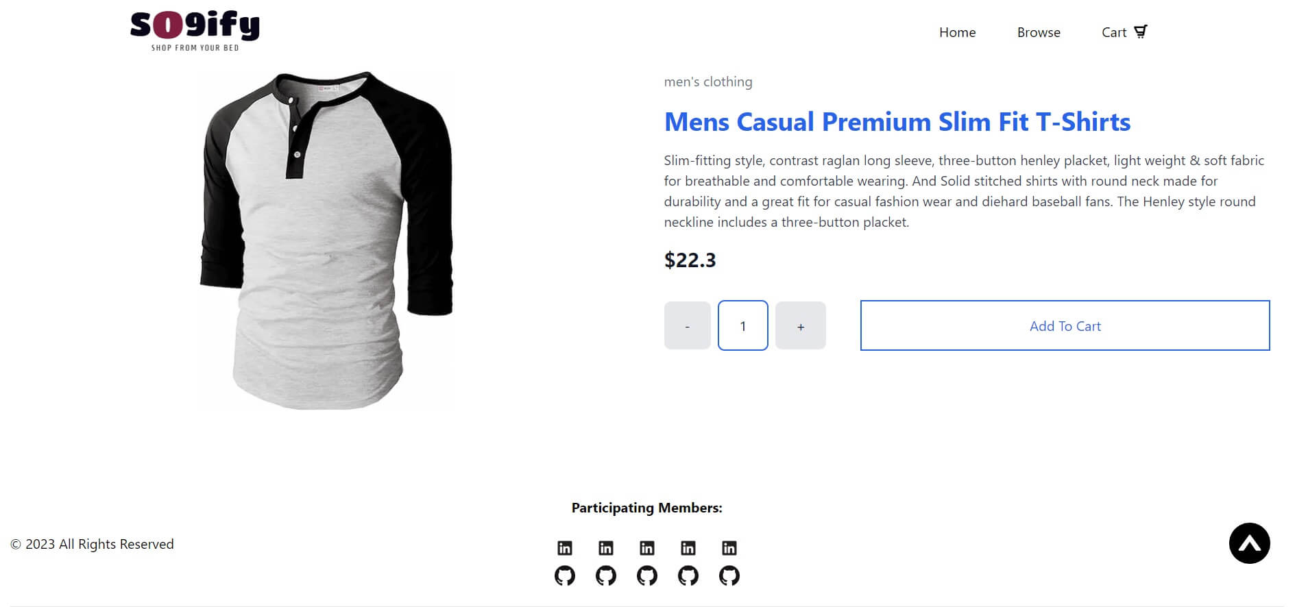 So9ify is an e-commerce website project that demonstrates the development of a functional online shopping platform. It provides users with the ability to browse, filter, products. The project focuses on building the frontend of the website using Next.js and Tailwind CSS.